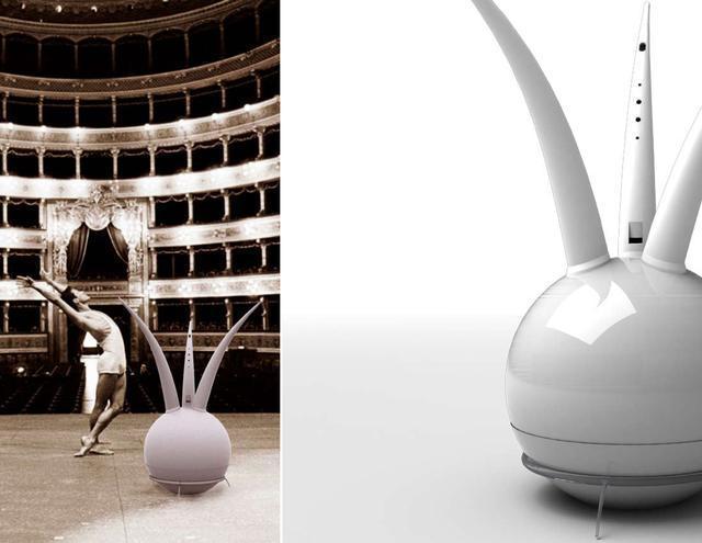 design of the sound system is inspired by folk custom of hanging painted plates on the wall
